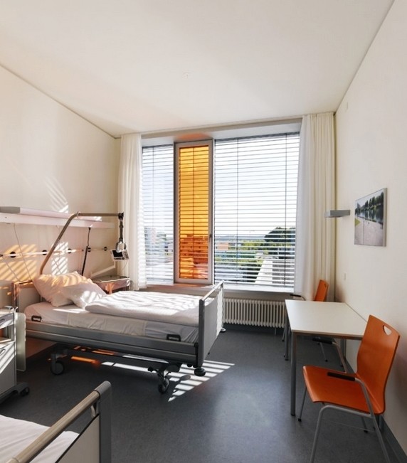 建筑最大的挑战就是要集中所有部门的功能于一体,而又不显建筑的累赘感。因此在设计时,把医疗室和病房完全隔开,为医院建筑的设计开辟了新的先河。 Jürgen Engel设计师表示说:我们的目的是建立一个家庭式温馨的医院。
