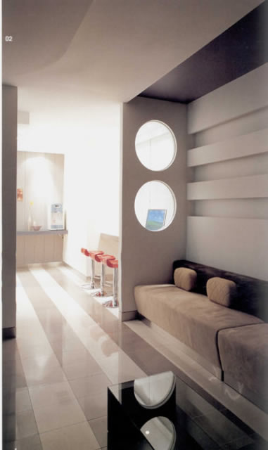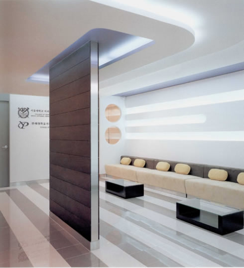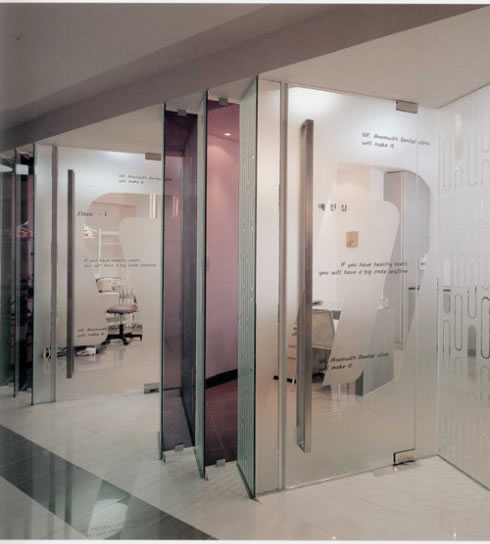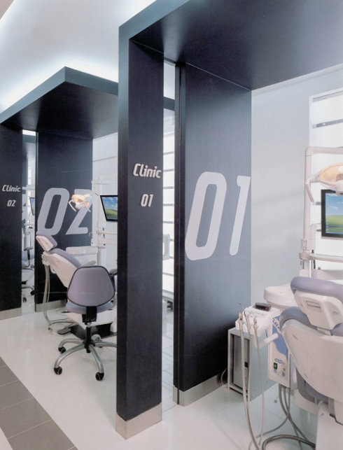 韩国的医院设计一直和他出产的美女一样,很干净,很时尚。没有庸脂俗粉的堆砌,只有纯净的清爽。这是一个韩国的牙科医院,很小,应该是诊所。精致不张扬。在设计领域内,牙科和美容是可以给设计师发挥比较大的地方,是大众更能接受个性化的医疗场所。这个隔断设计的比较有趣,但如果模仿,一定请妥善处理,否则会很难看。色彩的搭配和数字的排列大小,都与隔断造型有机结合,地面的拼花有效分隔空间,其他的留白处理让空间可以有空气感不显压抑。